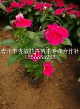 又名长春花,学名:Catharanthus roseus (L.)G. Don,别名金盏草、四时春、日日新、雁头红、三万花。台湾育种出多个品种,育种以花朵越大为趋势。中草药用途上,全草入药可止痛、消炎、安眠、通便及利尿等。亦有医者配伍入治疗癌症的复方,作为药材中的一味,可能是考量到它所具有的抗肿瘤成分。全株具毒性需斟酌注意。误食后,会造成白血球减少、血小板减少、肌肉无力、四肢麻痹等症状。其乳汁中所含生物碱,如长春花碱和长春新碱(vincristine),被提炼出来作为多种癌症如白血病、哈杰金氏症所用的化学治疗药物。亚灌木,略有分枝,高达60厘米,有水液,全株无毛或仅有微毛;茎近方形,有条纹,灰绿色;节间长1-3.5厘米。叶膜质,倒卵状长圆形,长3-4厘米,宽1.5-2.5厘米,先端浑圆,有短尖头,基部广楔形至楔形,渐狭而成叶柄;叶脉在叶面扁平,在叶背略隆起,侧脉约8对。聚伞花序腋生或顶生,有花2-3朵;花萼5深裂,内面无腺体或腺体不明显,萼片披针形或钻状渐尖,长约3毫米;花冠红色,高脚碟状,花冠筒圆筒状,长约2.6厘米,内面具疏柔毛,喉部紧缩,具刚毛;花冠裂片宽倒卵形,长和宽约1.5厘米;雄蕊着生于花冠筒的上半部,但花药隐藏于花喉之内,与柱头离生;子房和花盘与属的特征相同。蓇葖双生,直立,平行或略叉开,长约2.5厘米,直径3毫米;外果皮厚纸质,有条纹,被柔毛;种子黑色,长圆状圆筒形,两端截形,具有颗粒状小瘤。花期、果期几乎全年。