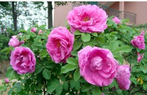 玫瑰属落叶灌木,枝杆多针刺,奇数羽状复叶,小叶5-9片,椭圆形,有边刺。花瓣倒卵形,重瓣至半重瓣,花有紫红色、白色,果期8-9月,扁球形。枝条较为柔弱软垂且多密刺,每年花期只有一次,因此较少用于育种,近来其主要被重视的特性为抗病性与耐寒性。