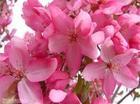 钻石海棠 树形水平开展,干红色,高4.5m,冠幅6m。新叶紫红色,长椭圆形,锯齿浅,先端急尖。花期4月中下旬,玫瑰红色;每序4(5)花,花瓣5数,直径4cm,萼筒密被柔毛,花梗毛较稀,长2.5cm,直立,花柱4,着花繁密。果实深红色,球形,直径1.3cm,果柄长2.6cm,果熟期6月至10月,果萼多宿存。开花极为繁茂,花色艳丽,且非常适应我国干燥的北方环境。