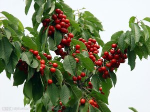 中国作为果树栽培的樱桃有中国樱桃、甜樱桃、酸樱桃。樱桃成熟期早,有早春...果的美誉,号称百果...枝。据说黄莺特别喜欢啄食这种果子,因而名为莺桃。其果实虽然小如珍珠,但色泽红艳光洁,玲珑如玛瑙宝石一样,味道甘甜而微酸,即可鲜食,又可腌制其他佳肴食品的点缀,因此深受人们的喜爱。中国樱桃每年的产量3500万公斤,人均29克,可见樱桃具有广阔的市场前景,中国栽培的甜樱桃品种为欧洲品种,在中国北方地区表现很好。由于欧洲甜樱桃一般需要7.2摄氏度以下低温900—1400个小时方可完成冬季休眠,不能在南方大面积栽培。因而在中国南方地区仍以中国樱桃为主在品种,同时,中国优良品种极少,普遍表现出果小、味酸、采前裂果诸多缺点。我们基地成功选育出了许多优质品种弥补了这些缺点。我处是中国大樱桃树苗主产区,常年向全国各地供应各种规格的大樱桃树苗,历史悠久,闻名天下。主要品种;红灯、早大果、美早、抉择、萨米拖、极佳、先锋、红蜜、水晶、布鲁克斯牛心红、长把红、早红宝石等早中晚熟30多个品种。砧木先进;组培高、中、抵挡苗吉塞拉5号、吉塞拉6号、大青叶、考特、山樱、桃子、中国小樱桃等。授粉树齐全。易栽培,适应能力强,成活率高,结果早,产量高,连年稳产。【3年结果,4年丰产】,所有苗木均出自基地,可看苗圃定苗。货源充足,价格适中,欢迎与我们联系。
