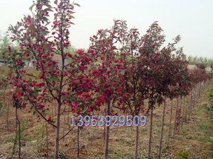 北美海棠红花,红叶,红果、观赏价值极高,北美海棠花期为4月上旬,花色红艳夺目,花型美丽动人。7-8月、玲珑剔透的海棠果挂满枝头,并一直挂至次年春天。北美海棠是不可多得的、集观花,观叶,观果于一体的稀有树种。同时大量供垂丝海棠、西府海棠、冬红海棠、木瓜海棠、樱花、黑松、侧柏、牡丹石榴、侧柏、杞柳种条等绿化苗木。