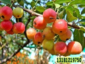 冬红海棠, 蔷薇科,苹果属,落叶小乔木.生物特性:树高可达5--7米;树冠开张,枝条粗壮,叶片肥厚浓绿,椭圆形,先端有圆钝,锯齿。掌状纹裂,幼时两面有短绒毛,老枝紫褐色,伞房花序:花5--12朵簇生,花萼紫红色,盛花粉色,花期载月中旬,自花授粉,座果率高,单果重6--10g,直径2-3厘米,成熟期11月初果实自7月始:由绿色转为透亮的金黄色后随季节的加深而逐渐的向红色过度。至成熟后颜色完全呈现出深红色,果表面洁净光亮,非常美丽.冬季不落果,一直点缀到翌年4月份,是海棠家族果实观赏期**长的品种! 因此而非常完美的解决了,园林绿化景观中冬季单调的现状。在漂雪的季节里而能够果实累累,实为一道亮丽的风景线。