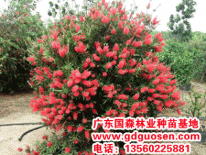 形态特征:桃金娘科灌木,高1-2米;树皮暗灰色,不易剥离;幼枝和幼叶有白色柔毛。叶互生,条形,长3-8厘米,宽2-5毫米,坚硬,无毛,有透明腺点,中脉明显,无柄。穗状花序,有多数密生的花;花红色,无梗;萼筒钟形,裂片5,脱落;花瓣5,脱落;雄蕊多数,红色;子房下位。蒴果顶端开裂。常绿灌木,株型紧凑,树形优美,观赏效果极佳。在珠三角地区一年可以开两次花分别是3~5月和9~11月。花色鲜艳、醒目,整朵花均呈红色,簇生于枝条顶端,似瓶刷状,形态奇特美丽而醒目。喜温暖湿润气候,喜偏酸性的土壤;能耐烈日酷暑,耐旱耐瘠薄,较耐寒冷。