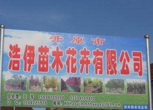 浩伊苗木花卉有限公司位于辽宁省开原市 地理位置优越,交通便利。本苗圃已有多年育苗历史,育苗经验丰富。现以公司加农户的模式发展,苗木种植面积已发展到2000余亩,。主要品种有. 各种规格绿化乔木、彩叶小乔木、花灌木、宿根花卉、花灌木等。产品远销北京、天津、山东、大连.河北、新疆、山西、内蒙等全国各个省、市、自治区。浩伊苗木花卉有限公司本着重合同、守信誉、互惠互利、信誉真诚的态度欢迎新老客户看样订货。本公司对外承揽 :绿化工程.园林设计.苗木技术指导.辅助键圃。