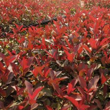 红叶石楠(photinia × fraseri)是蔷薇科石楠属杂交种的统称,为常绿小乔木或多枝丛生灌木,单叶轮生,叶披针形到长披针形,新梢及嫩叶鲜红色,老叶革质,叶表深绿具光泽,叶背绿色,光滑无毛。顶生伞房圆锥花序,小花白色,花期4月上旬至5月上旬。红色梨果,夏末成熟,可持续挂果到翌年春。