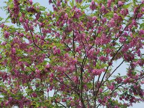 紫花槐又名香花槐,拉丁名为:Robinia pseudoacacia cv.idaho 原产于西班牙,属蝶形花科落叶乔木,树高大约10~12米,树皮浅灰色,深纵裂,叶互生,羽状复叶。