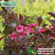 紫叶锦带系锦带花的一个园艺品种,是近年从美国新引进的优良彩叶观花树种.适应性良好。灌木,植株高1.5—1.8米,冠幅1.4米。叶长椭圆形,嫩枝淡红色,老枝灰褐色。花鲜红色,繁茂艳丽,整个生长季叶片为紫红色,抗寒性强,可耐-20℃左右低温,也较耐干旱、耐污染。花期自4月陆续开到10月份,枝条开展成拱形。聚伞花序生于叶腋或枝顶,花冠漏斗状钟形,夏初开花,花朵密集,花冠胭脂红色,艳丽而醒目。修剪一次,发一次芽,花更旺。红花点缀紫叶中,甚为美观。可孤植于庭院的草坪之中,丛植于路旁,也可用来做色块,树形格外美观,是锦带花的换代品种,具有很高的观赏价值。景点区丛植或做花篱效果较好,是一良好的园林观赏树种。近年在很多地区引种试栽,表现良好,值得大力推广应用。