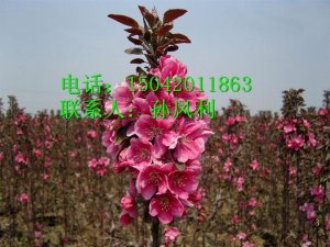 北美海棠之红宝石海棠;从美国引种,是集叶、花、果、枝、树形同观共赏的绿化、彩化树种。该树种以其优美的树形、丰富多彩的观赏效果成为中国珍贵的城市绿化彩色树种。具有“叶红、花红、果红、枝亦红”的特点,花、果、枝干、叶在生长期中均表现出红宝石颜色。春季红色的枝条发芽后,其嫩芽嫩叶血红,红宝石海棠整个生长季节叶片呈紫红色,整株色感极好,蜡质光亮。开出花朵粉红色,花期4-5月。坐果后鲜红的果实挂满全树,果为红色梨果,接近于球形,果实成熟期为8-9月份。秋天满树红叶,满枝红果,满树紫枝,果实累累。冬季,鲜红的枝条。北美海棠主要品种有:皇家雨点海棠、王族海棠、红宝石海棠、钻石海棠、印第安魔力海棠、珠穆朗玛海棠、红肉海棠、光辉海棠、白兰地海棠 我基地现有大量二年生株高70cm以上的扦插小苗,及直径2cm以上的成品树