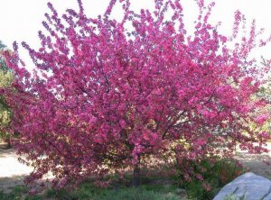 北美海棠之钻石海棠西北,华北,华南均能生长。森鑫苗木基地有引种。 形态 观花落叶小乔木。树型紧密,株高4.5-6米,冠幅6米,小枝暗紫。新叶红色,老叶绿色。绚丽海棠花深粉色,开花繁密而艳丽,花期4月下旬。果实亮红色,6月就红艳如火,直到隆冬。果熟期6-12月。 习性 钻石海棠的生长快,栽培管理简单,繁殖也比较容易。它比较耐贫瘠,而且抗寒、抗盐碱能力都比较强。它对环境的适应性极强,能够忍受冬季-25℃,夏季高达40℃的环境条件,是优良的绿化树种。 北美海棠主要品种有:钻石海棠、皇家雨点海棠、红宝石海棠、高原之火海棠、印第安魔力海棠、光辉海棠、红肉海棠、白兰地海棠等 现我基地有包括钻石海棠在内的各种北美海棠二年生小苗100多W棵以及直径2cm以上的成品树数十万棵