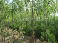 垂柳,高大落叶乔木,分布广泛,生命力强。是常见的树种之一,高达12-18米,树冠开展而疏散。树皮灰黑色,不规则开裂;枝细,下垂,淡褐黄色、淡褐色或带紫色,无毛。 垂柳也是园林绿化中常用的行道树,观赏价值较高,成本低廉,深受各地绿化喜爱。枝条细长,生长迅速,自古以来深受中国人民热爱。**宜配植在水边,如桥头、池畔、河流,湖泊等水系沿岸处。与桃花间植可形成桃红柳绿之景,也可作庭荫树、行道树、公路树。亦适用于工厂绿化,还是固堤护岸的重要树种。