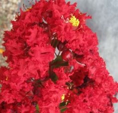 千屈菜科紫薇属落叶乔木,美国大红紫薇新品种,紫薇中花色**鲜红的品种之一,花鲜红如国旗,花簇可达24英寸,花量大,花色艳丽,片植的色块开花时一片火海。
