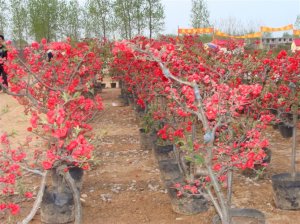 绿化及花卉苗(大量):木瓜海棠,西府海棠,长寿冠,紫薇,樱花,水杉,红宝石,长寿果,开心果,侧柏,银杏。金银花等。