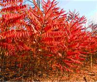 火炬树火炬树属阳性树种,俗称火杞。因其果 火炬树实红艳,树形如团团火炬,被称为“火炬树”。火炬树每年呈现3种色彩:春季开白花,夏季浑身绿叶绿果,秋冬挂红果,是一种十分珍贵的景观植物。花期5月~7月,果期9月。树高不足1米,盘根错节,丛丛蓬蓬,枝繁虬曲,树皮透黑,形态苍古 火炬树树叶繁茂,表面有绒毛,能大量吸附大气中的浮尘及有害物质,牛羊不食其叶片,不受病虫危害。 火炬树根部萌芽能力强,自然繁殖能力快,造林成活率高,在人为破坏及森林火灾后仍能以顽强的生命力而重获新生。火炬树还具有枝干含水量高,油脂少不宜被燃烧等特点,是理想的封山育林环保树种和天然的护林防火隔离带树种。该树种适应能力强,耐干脊、耐盐碱,发达的根系能起到保持水土、涵养水源、改善生态的作用,是绿化珍稀树种,被称为美化环境的天使,防止水土流失的先锋。