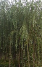 金丝柳,雄株,乔木,幼干绿色,小枝生长在季节黄绿色,休眠期淡黄色,披针形叶,叶长10.3cm,叶宽1.6cm。无性繁殖容易,生长快,一年生扦插苗平均高生长不低于2.0cm,金丝柳根系发达,生长快,对毒气有一定的抗性,并能吸收二氧化硫。