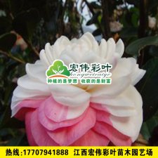 信息描述:香太阳茶花美国育成。半重瓣型;大型花,花瓣宽圆,平铺,花瓣扭曲起皱,白色具红色条纹或斑块,有时白,有时会出现整朵的玫瑰红色或粉红色花,呈现少有的一树两色花现象。金黄色花药,奶黄色花丝,花丝粗壮,花径13-15厘米。叶淡绿,倒卵圆形,叶脉明显,长势旺,立性;花期1月至3月下旬。气温较高时散发非常好闻的苹果香气,是目前所知的香气**好闻的茶花。