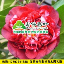 信息描述:午夜魔幻茶花美国加州选育。花为黑红色,花期4-5月份,花有蜡质感,托桂型到牡丹型,中型花,外轮花瓣波浪状,先端凹陷,中部小花瓣与金黄色雄蕊簇拥呈团状,小花瓣顶部偶有小白斑块,花朵稠密。叶片浓绿色,窄椭圆形,光亮,嫩枝叶红色,植株紧凑,枝软,生长旺盛。朵朵泛蜡光,花心出白斑。先观花美丽,后赏红叶添。