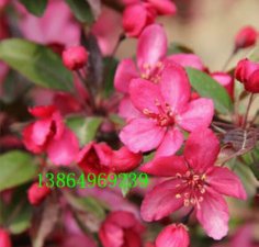 详细说明: 北美海棠花期为3月下旬,花色多姿多彩,花型美丽动人,团团锦簇,在4~6月间徐徐长出色彩艳丽的新叶,继而在满树红绿交映的叶丛中缀出姹紫嫣红,累累玲珑的海棠果,5月是北美海棠鲜叶**鲜艳, 新发的叶梢比起4月的首批新叶更加鲜亮美丽。阳光穿透的彩色叶片莹润柔和,并不亚于花的靓丽,新叶彩色的观赏期在植株生长季节不断出现。7至8月由于高温,多数海棠不再抽发新梢,颜色逐步稳定,可归为绿叶组、红叶组和红绿叶组,每组都有不同色差。如红叶品种中“霹雳贝贝”比“王族”更明亮;绿色品种中“当娜”比“春雪”更浓重;绿里透红中“粉屋顶”深绿透着棕红,而“李斯特”则是橄榄绿透着鲜红。 而**漂亮的则属皇家雨点的叶子如雨点般晶莹剔透。盛夏是海棠叶色**深的季节,“王族”春季鲜明的红色此时变得沉闷无光,给人黑漆漆的感觉。7~8月里已经是红透透的挂满整树,并且一直挂果到翌年3月,是不可多得的集观花、观叶、观果为一体的观赏树种。北美观赏海棠适应性强,全国各地均可引种栽培。 宿存果的观赏期在湿度大的环境中可持续到来年3至4月。而在冬季空气干燥的环境里,虽然果实挂在树上,但2月刮起的早春干风,会造成其果皮干皱,像晒过的红枣一样,景观效果大打折扣。北美海棠**佳的果实观赏期一般在7月至第二年的1月,挂雪、挂冰的果实**为生动。