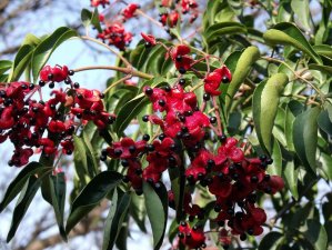 野鸦椿是一种优良的乡土园林绿化树种。春夏之际,黄白色小花集生于枝顶,满树银花,十分美观;秋冬季节,果实布满枝头,果实成熟后果皮反卷,露出鲜红 色的内果皮,黑色的种子粘在内果皮上,尤如满树红果镶嵌着粒粒黑珍珠,十分艳丽,令人感到赏心悦目,观赏价值极高。野鸦椿从果皮变红到种子完全脱落时间长 达5-6个月,挂果时间之长,是自然界大多数观果树种无法与其相比。该树种已列入我国优良阔叶树种质资源库。