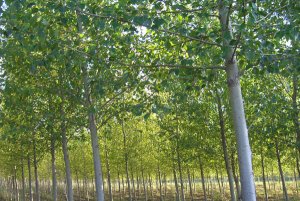 栽培技术:选择雄性毛白杨优良品种培育小苗;移栽宜在早春或晚秋进行,适当深栽;培养胸径4~6厘米的苗木,定植密度500~800棵/667平方米,3年后可间苗销售,留床苗继续培养大苗;不可采用“拔大苗”的方式出圃,培养胸径7~8厘米的苗木定植200~300棵/667平方米,冠高比3:5,每层留3个主枝,全株留9个主枝左右,保持主干通直;因毛白杨喜大肥大水,还容易发生病虫害,因此要加强水肥管理和病虫害防治。