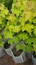 普林斯盾金.黄金枫.又叫挪威槭黄金枫叶片一样.颜色不同.有彩叶王子之称.是广大苗圃必选品种.根系较浅,但叶片光滑、宽大,秋季叶片呈黄色,色彩持续时间长。四月开花,雌雄异株,花黄绿色,伞状花序5至7.5厘米,花朵绽放在叶片出现之前生长速度中等,前5至8年每年可以长25至30厘米左右。翼果,长3至5厘米,夏季成熟,浅棕色,结果期是九月到十月。树体能分泌一种奶状液体,对害虫有一定抑制作用。