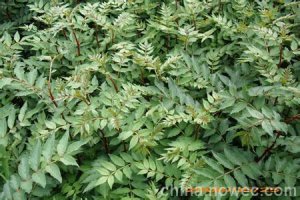 当年生小枝奇数羽状复叶,叶轴边缘有狭翅;小叶5-11个,纸质,卵形或卵状长圆形,无柄或近无柄,长1.5-7cm,宽1-3cm,先端尖或微凹,基部近圆形,边缘有细锯齿,表面中脉基部两侧常被一簇褐色长柔毛,无针刺。聚伞圆锥花序顶生,花色大多为白色或者淡黄色,花被片4-8个;雄花雄蕊5-7个,雌花心皮3-4个,稀6-7个,子房无柄。果球形,通常2-3个,果球颜色大多为青色,红色,紫红色或者紫黑色,密生疣状凸起的油点。花期3-5月,果期7-9月。