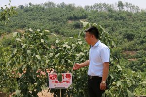 2、“冠核一号”核桃的丰产性很强。该品种3年就可有产量,中等管理水平,亩产干果50千克(公斤)以上。5-6年树即可进入丰产,亩产400-500千克(公斤),比“