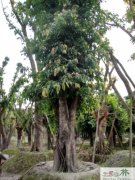 形态特征:黄角树苗木其茎干粗壮,树形奇特,悬根露爪,蜿蜒交错,古态盎然。枝杈密集,大枝横伸,小枝斜出虬曲。树叶茂密,叶片油绿光亮。寿命很长,百年以上大树比比皆是。花期5~8月,果期8~11月,果生于叶腋,球形,黄色或紫红色。