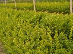 大量供应优质苗木金叶女贞,营养钵苗,质优价廉欢迎订购。金叶女贞在生长季节叶色呈鲜丽的金黄色,可与红叶的紫叶小檗、红花继木、绿叶的龙柏、黄杨等组成灌木状色块,形成强烈的色彩对比,具极佳的观赏效果,也可修剪成球形。由于其叶色为金黄色,所以大量应用在园林绿化中,主要用来组成图案和建造绿篱。