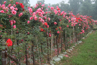 绿化用途广 在环城行道、公园、风景区、小区庭院等一切有绿地的地方,树状月季都能起到画龙点睛的美化功效。