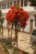 树状月季又称月季树,现培育高杆蔷薇,然后再高杆蔷薇顶部嫁接各色月季,通过精心培育而成的类似于树形的月季。