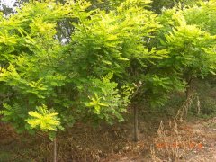 高接金叶国槐,丛生金叶国槐,乔木,为国槐的一个变种,叶子常年金黄,远看似满树黄花,落叶后枝条半绿半黄,枝条生长到50-80厘米自然下垂,又称金叶垂槐;河南锦绣花木园艺厂有引种,该品种直立性较强,枝条柔软,有一定的下垂性;金枝国槐表现为春季发芽时为金黄色,但到生长季又变成绿色,而金叶国槐在整个生长季均为金黄色,适应性强,属于生长季**稳定的一种黄色彩叶树,在国槐能生长的地方都能生长