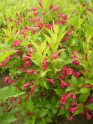 园林用途:修剪一次,发一次芽,花更旺。 红王子锦带系锦带花的一个园艺品种,是近年我国园艺工作都从美国新引进的优良树种.性喜光,抗寒,抗旱,管理比较粗放,也较耐阴,对土壤要求不严。红花点缀绿叶中,甚为美观.可孤植于庭院的草坪之中,也可丛植于路旁,也可用来做色块,树形格外美观,是锦带花的换代品种,具有很高的观赏价值。本品花期长,每年“五、一”花朵盛开直到降霜为止,只要有新叶蒙发,就有新的花蕊出现。