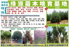 河南省焦作市武陟县绿源苗圃是县林业局独家以果树苗、绿化苗、等优新品种苗木生产。经营为一体的正规苗圃,主要推广本中心培育和引进的国内外优良果树、绿化等优良品种,本中心主要致力于果树新品种选育。区域示范推广,年产各类优质苗木上百万株。品种有;桃树苗 、柿子树苗、梨树苗、杏树苗、花椒树苗、核桃树苗、苹果树苗、山楂苗等200多万棵。