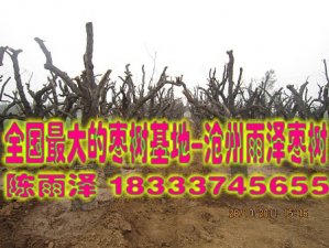 河北沧州雨泽景观苗木基地长期供应:10-50公分大规格枣树古桩枣树、梨树、榆树,联系人:陈雨泽 电话:18333745655 15030790983 雨泽景观苗木基地位于河北沧州献县是全国**大的枣树苗木基地 品种众多 价格**低 欢迎您沧州采购