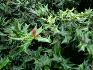枸骨(拉丁名 Ilex cornuta Lindl. et Paxt.)又名老虎刺、猫儿刺、鸟不宿,其株形紧凑,叶形奇特,碧绿光亮,四季常青,入秋后红果满枝,经冬不凋,艳丽可爱,是优良的观叶、观果树种,在欧美国家常用于圣诞节的装饰,故也称“圣诞树”。常见的品种有无刺枸骨、小叶枸骨、黄果枸骨、多刺冬青等。