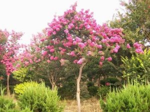 紫薇具有生长缓慢、寿命长、耐修剪、干粗枝柔、叶圆根露、枝间易愈合、极易造型等特点,是制作盆景的好材料,也可作切花,瓶养花时间长。适宜园林种植。对二氧化硫、氟化氢、氯气等多种有害气体,均有较强的抗性,并能吸收一定量的有害气体,每千克紫薇叶能吸硫10克左右。紫薇吸滞粉尘能力也强,在水泥厂内距污染源200~250米处,每平方米叶片可吸滞粉尘4.42克。紫薇是工厂、城市、居民区绿化的好材料。
