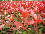 红叶石楠球, 独干石楠 , 叶色美、姿态美:按常规自然生长,红叶石楠一年中基本上萌发3-4次,新芽萌发时,新梢及嫩叶均鲜红夺目,且红得极富光泽和亮度。春至夏,一般抽枝二次,新叶从淡象牙红至鲜亮红再至淡红、再转绿,...次历时近月余,夏前一次历时稍短(它的红色有点类似于春季萌发的红叶小檗,不同于红花继木、红叶李等的暗红);至盛夏,叶色则转深绿(夏季高温期较长,则绿叶期延长);至初秋,又萌芽1-2次,至十月下旬停止发芽抽枝,叶子从十一月下旬开始转绿,如果在十月中旬再次修剪一次,则发出的新芽,红叶期可保持整个冬天(江浙一带);至次年春暖花开时才逐渐转成绿色。 红叶石楠枝叶疏密有致,可自然形成散球状小乔木,如修剪则可成高球型、柱形、绿篱形、矮拼球型等,均仪态万千,鲜艳夺目。可以说,常绿树种中,目前与红叶石楠可以相媲美的红色观叶系列树种少之又少。