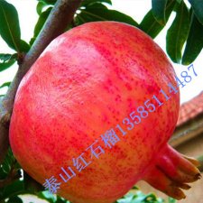 泰山红石榴:原产泰山,为优良的石榴品种,古为贡品,9月下旬至10月上旬成熟,果实特大,单果重400克,**大可达750克,果而鲜红色,艳丽诱人,果粒白里透红,甜度很高,具冰糖口味,无酸味,久吃不厌,品质极上。