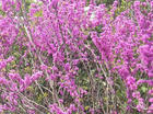 豆科紫荆属.该属为落叶乔木或灌木。单叶互生,全缘,叶脉掌状,有叶柄,托叶小,早落。花于老干上簇生或成总状花序,先于叶或和叶同时开放;花萼阔钟状; 5齿裂,弯齿顶端钝或圆形;花两侧对称,上面3片花瓣较小;雄蕊10,分离;子房有柄。荚果扁平,狭长椭圆形,沿腹缝线处有狭翅;种子扁,数颗。紫荆为落叶乔木,经栽培后常成灌木状。叶互生,近圆形,顶端急尖,基部心形,长6—14厘米,宽5—14厘米,两面无毛。花先于叶开放,4—10朵簇生于老枝上;小苞片2,阔卵形;花玫瑰红色,长1.5—1.3厘米,小花梗纲柔,长0.6—1.5厘米。荚果狭披针形,扁平,长5—14厘米,宽1.3—1.5厘米,沿腹缝线有狭翅不开裂;种子2—8颗,扁圆形,近黑色。花期4—5月。