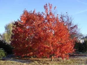 北美枫香(Liquidambar styraciflua)为金缕梅科枫香属大型落叶阔叶乔木,原产于北美,树干笔直高耸,适应性强,生长较快。春夏季叶色暗绿,秋季变为黄色、紫色至红色,落叶晚,是优良的园林观赏树种。