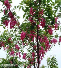 香花槐又名富贵树,拉丁名为:Robinia pseudoacacia cv.idaho 原产于西班牙,属蝶形花科落叶乔木,株高10—15米,树干褐至灰褐色。叶互生,羽状复叶,由7—19 片小叶,叶椭圆形至卵长圆形,长3—6厘米 ,光滑,叶片绿色美观对称 ,深绿色有光泽,青翠碧绿。总状花序,花被红色,有浓郁芳香, 可同时盛开200—500朵小红花,非常壮观美丽。 香花槐叶繁枝茂,树冠开阔,树干笔直,树景壮观, 全株树形自然开张,树态苍劲挺拔,观赏性强。香花槐春天移植,当年开花,是优良的蜜源树种。它枝繁叶大,叶柄凸出不易脱落,根系发达,萌蘖快,可有效地防风和保持水土,且耐寒、耐旱、抗高温、抗病虫。香花槐生长较快,可用埋根或扦插繁殖,是开发西部防风固沙的可选树种。河北保定《乡村苗木基地》欢迎各界朋友前来选购,诚信...!质量...!价格合理!