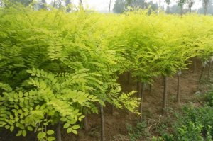 金叶槐为国槐的一个新变种,落叶乔木,由国槐芽变选育而成。小枝浅绿色,奇数羽状复叶互生,叶片金黄色,长15-20cm,小叶5-15枚,长2.5-7.5cm,宽1.2-3cm;卵形或椭圆形,全缘。枝条在生长到50-80cm时出现较强的下垂性。落叶后枝条呈半黄半绿,向阳面为黄色,背阴面为绿色。金叶槐叶片在整个生长季叶色均为金黄色,远看似满树金花,十分美丽,具有很高的观赏价值。通过近几年的观察,金叶槐表现出了相当稳定的生长性状。其习性和年生长量与国槐基本相同,年生长量略低于国槐。 北自辽宁,南至广东、台湾,东自山东,西至甘肃、四川、云南,在国槐能生长的地方均可栽培。喜深厚、湿润、肥沃、排水良好的沙壤,对二氧化硫、氯气、氯化氢及烟尘等抗性很强。抗风力也很强。是优良的城市绿化、风景林绿化、公路绿化、小区绿化、公园绿化、庭院绿化树种。河北保定《乡村苗木基地》大量供应高矮接金叶槐,诚信...!质量...!价格合理!上货速度快!可指树挖树!欢迎各界朋友前来选购。