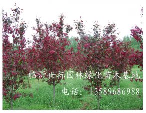 红宝石海棠|高原之火海棠|绿化苗木|临沂世标园林绿化观赏特性:红宝石海棠是一个叶、花、果、枝与树形同观共赏的绿化、彩化名贵树种。具有“叶红、花红、果红、枝亦红”的特点,花、果、枝干、叶在生长期中均表现出红宝石颜色。春季红色的枝条发芽后,其嫩芽嫩叶血红,开出花朵粉红色,坐果后鲜红的果实挂满全树;秋季成熟的果实紫红、酸甜适口;冬季,鲜红的枝条令人耳目一新,是公园、庭院、街道绿化亦是优良树种。再者因其易修剪、好整形,常在庭院门旁或亭、廊两侧种植,也是草地和假山、湖石配置材料,不仅长势好,且景观靓丽。