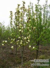 白玉兰是落叶乔木,高达25米,径粗可达200厘米,树冠幼时狭卵形,成熟大树则呈宽卵形或松散广卵形。实生起源的大树常主干明显,树体壮实,雄奇伟岸,生长势壮,节长枝疏,然花量稍稀。嫁接种往往呈多干状或主干低分枝状特征,节短枝密,树体较小巧,但花团锦簇,远观洁白无瑕,妖娆万分。故不同起源之白玉兰园林应用中情趣各异,在小型或封闭式的园林中,孤植或小片丛植,宜用嫁接种,以体现古雅之趣;而风景游览区则宜选用实生种,以表现粗犷纯朴的风格。