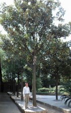 广玉兰常绿大乔木,高20-30m。树皮淡褐色或灰色,呈薄鳞片状开裂。枝与芽有铁锈色细毛。叶长椭圆形,互生;叶柄长1.5-4cm,背面有褐色短柔毛;托叶与叶柄分离,无托叶;叶革质,叶片椭圆形或倒卵状长圆形,长10-20cm,宽4-10cm,先端钝或渐尖,基部楔形,上面深绿色,有光泽,下面淡绿色,有锈色细毛,侧脉8-9对。花芳香,白色,呈杯状,直径15-20cm,开时形如荷花;花梗精壮具茸毛;花被9-12,倒卵形,厚肉质;雄蕊多数,长约2cm,花丝扁平,紫色,花药向内,药隔伸出成短尖头;雌蕊群椭圆形,密被长绒毛,心皮卵形,长1-1.5cm,花柱呈卷曲状。聚合果圆柱状长圆形或卵形,密被褐色或灰黄色绒毛,果先端具长喙。种子椭圆形或卵形,侧扁,长约1.4cm,宽约6mm。