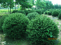 金叶榆造型。红叶李造型,青扦云杉球造型。