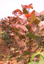 山西省绛县惠农优质苗圃场从2004年引进中华红叶杨树种,经过几年的精心培育,目前拥有300亩以上的红叶杨苗圃繁育基地,可提供一年生、二年生树苗及繁育条母。中红杨经多年培育、区试性状稳定,特异性突出,具有四大特点: