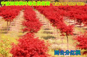 浙江省宁波市四明枫叶绿化供苗中心常年供应1---30公分红枫/樱花/五针松/红叶李/红叶石楠/红梅/桂花/鸡爪槭/羽毛枫/槭枫/红白玉兰/二乔玉兰/海棠/紫薇/茶花/茶梅/罗汉松/青枫/金钱松/香樟/黄山栾树/广玉兰/无患子等几十种绿化苗木. 以诚为本,货源充足. 地址:浙江省宁波市溪口镇