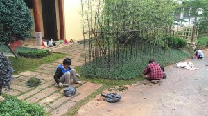 5 、耐修剪早园竹非常耐修剪,易整形。照片中的绿篱高 80 厘米,一年至在 3 月中下旬进行一次修剪,一般下剪 25 至 35 厘米。 30 天左右嫩枝可长齐。6 、病虫害少用早园竹作绿篱,可免去用大叶黄杨、小叶黄杨、侧柏、法国冬青、红叶石楠等植物作绿篱时需要的一些防病虫的麻烦