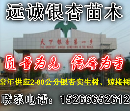 嫁接)。看树挖树.包办苗木检疫和调车服务,直接供货无中间环节 。并承接银杏绿化工程。您尽可放心前来参观考察订货,真诚与您合 作,共同发展。地址:山东省郯城县重坊镇龙华村经济开发区 联系人:吴守伟电话:15266652612, 15266652759QQ:1286655057银杏树|银杏实生树|银杏嫁接树|银杏小苗|银杏基地|银杏盆景